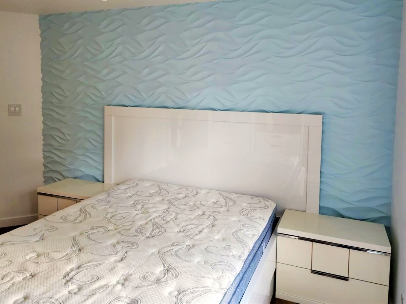 Versatility: the use of 3D panels is wide. They can be used to segment space or decorate furniture facades. Experienced designers use them as an elegant background for other impressive interior elements.